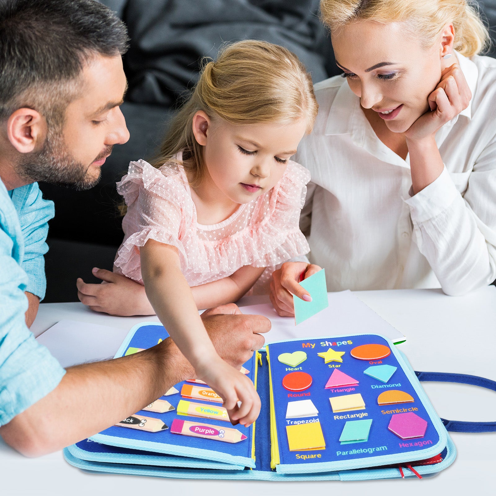 Desarrolla la motricidad fina — al abrochar, deslizar, atar y girar piezas de diferentes formas y texturas.